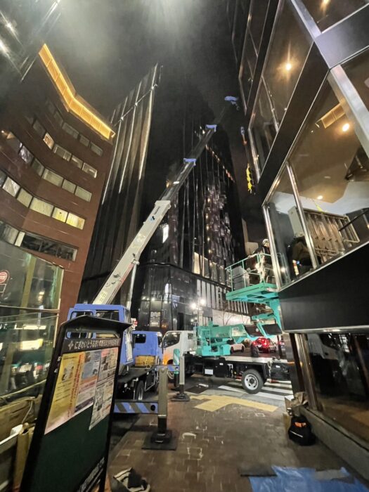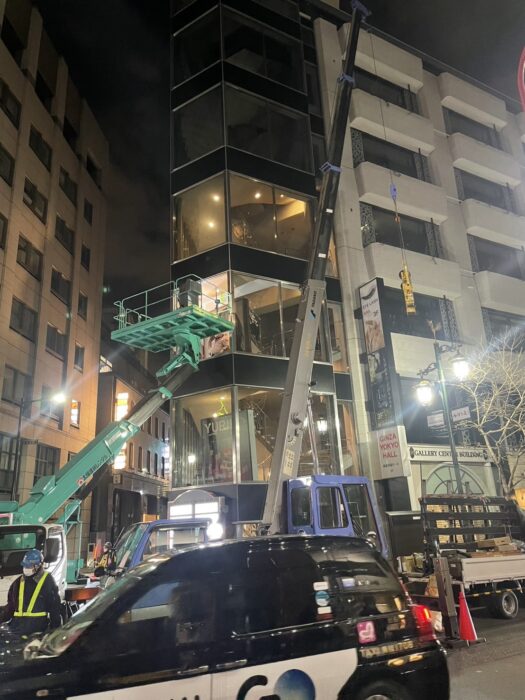 本日、夜勤でガラス搬入作業です。作業は順調に進んで無事終わる事が出来ました。