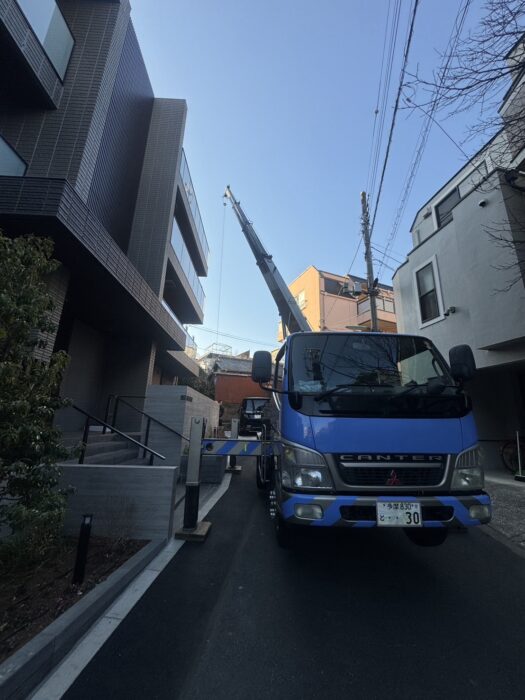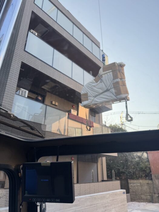 本日、運送屋さんと一緒の作業でグランドピアノ揚重作業です。作業は順調に進んで無事終わる事が出来ました。