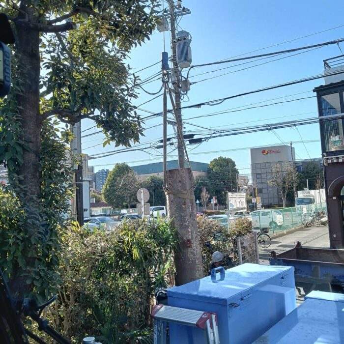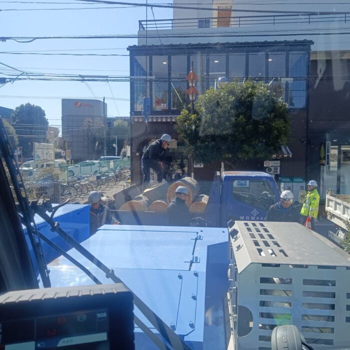 本日、前回施工した場所にラフター13トン進入してケヤキ伐採作業です。伐採作業は順調に進んで無事終わる事が出来ました。