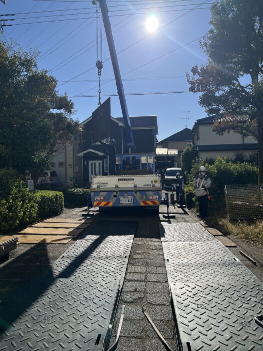本日、引き続きの現場でスタンション材搬出作業です。弊社ユニック班が鉄板養生施工作業行ってからラフター16トン進入設置。スタンション材搬出致しました。作業は順調に進んで無事終わる事が出来ました。