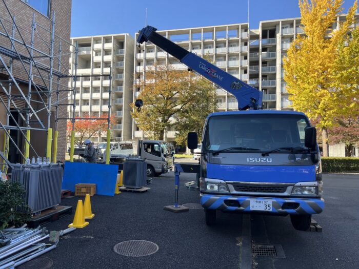 本日、トランス入替作業です。作業は順調に進んで無事終わる事が出来ました。