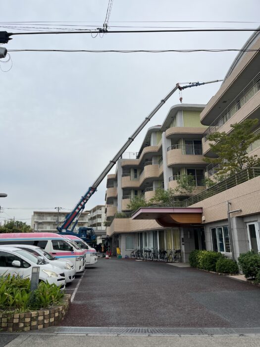 本日、施設の屋上にあるボイラーの入替作業です。弊社ユニック班が鉄板養生施工作業行ってからラフター35トン進入設置。入替作業は順調に進んで無事終わる事が出来ました。