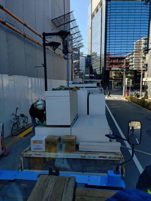 本日、引き続きの現場でボード揚重作業です。作業は順調に進んで無事終わる事が出来ました。