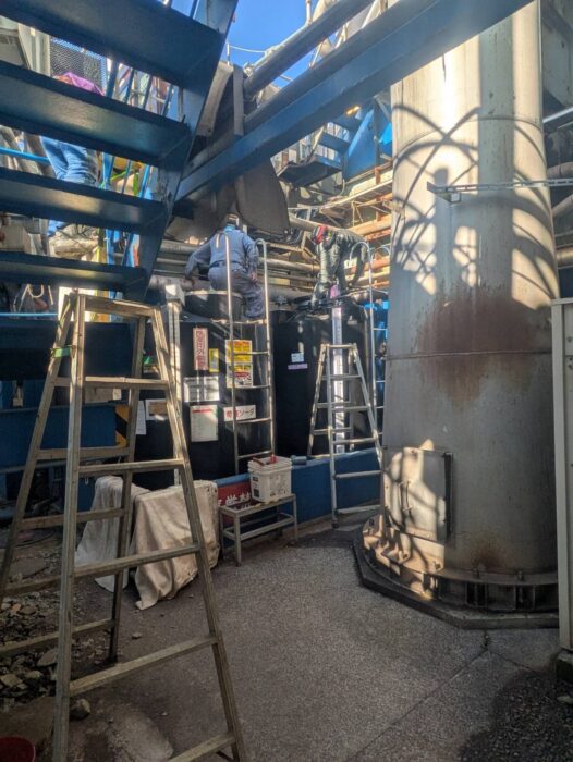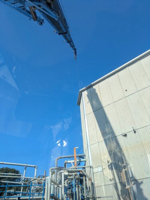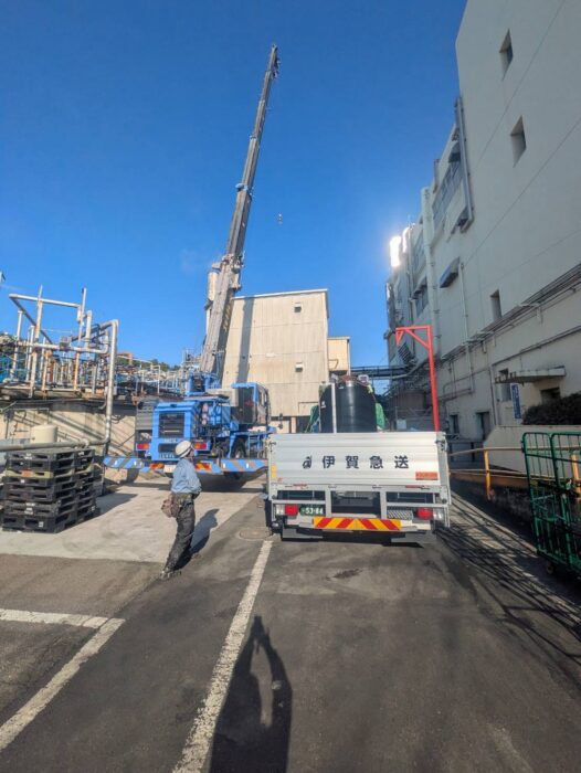 本日、工場内にポリタンク搬入作業です。作業は順調に進んで無事終わる事が出来ました。