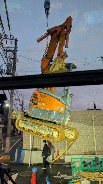 本日、ユンボ搬出作業です。作業は順調に進んで無事終わる事が出来ました。