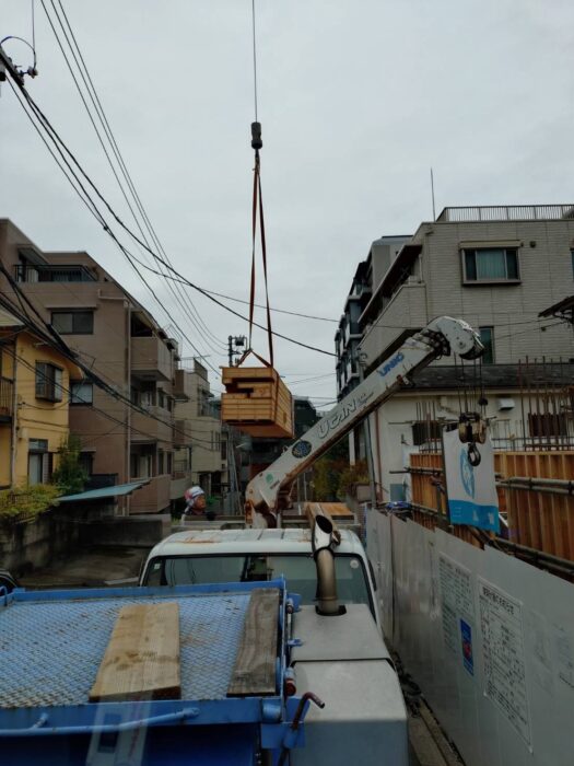 本日、型枠材搬入作業です。午前中トラック1台搬入、午後トラック1台搬入致しました。作業は順調に進んで無事終わる事が出来ました。