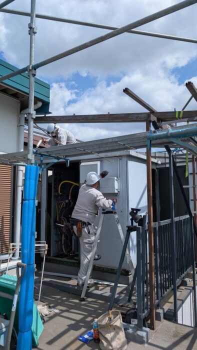 本日、変圧器入替作業です。作業は順調に進んで無事終わる事が出来ました。