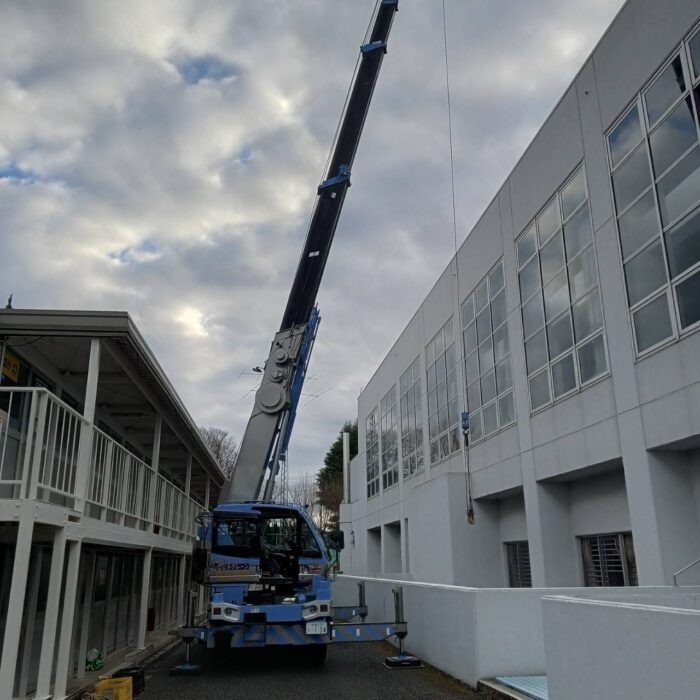 本日、変電盤とトランス揚重作業です。作業は順調に進んで無事終わる事が出来ました。