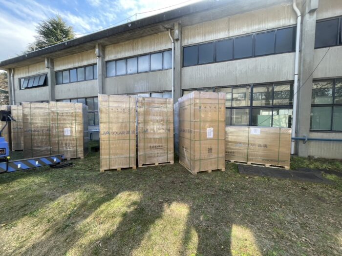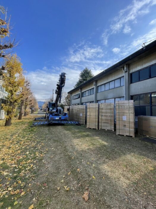 本日、太陽光パネル揚重作業です。作業は順調に進んで無事終わる事が出来ました。