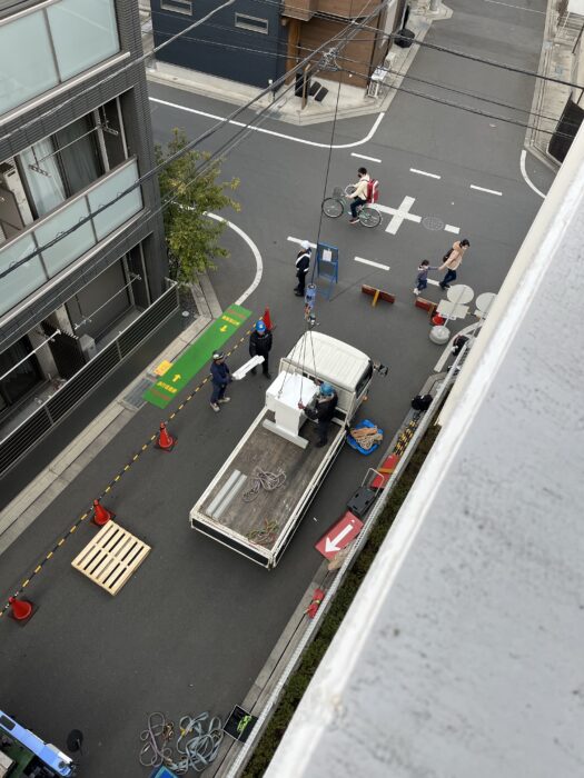 本日、太陽光パネル揚重作業です。弊社作業員が規制材を持って来て規制してからピタゴラス進入設置。玉掛け合図作業も行って無事終わる事が出来ました。