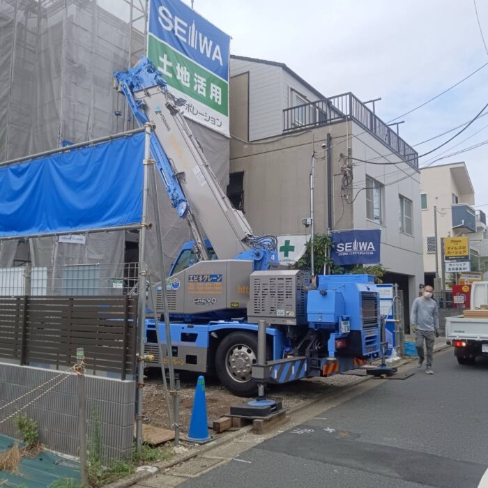 本日、屋根材搬入作業です。作業は順調に進んで無事終わる事が出来ました。