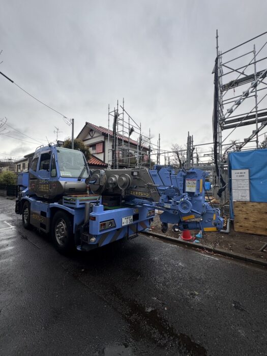 本日、木造建て方作業です。やりやすい現場で建て方作業は順調に進んで無事終わる事が出来ました。