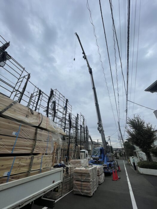 本日、木造建て方作業です。建て方は順調に進んで無事終わる事が出来ました。