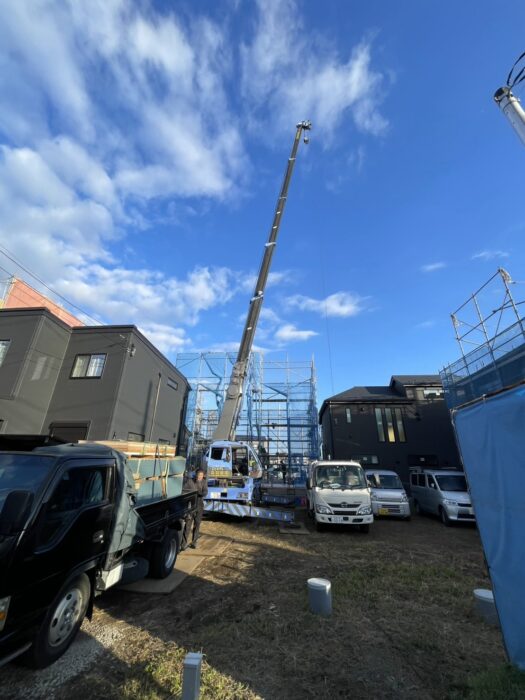 本日、木造建て方作業です。建て方作業は順調に進んで無事終わる事が出来ました。