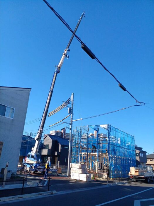本日、木造建て方作業です。建て方作業は順調に進んで無事終わる事が出来ました。