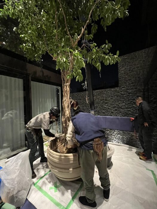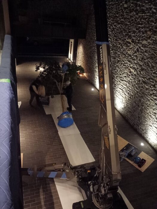 本日、植木搬出作業です。新築のお宅の植木を搬出作業行いました。綺麗な場所でカニクレーンで作業行い、無事搬出する事が出来ました。