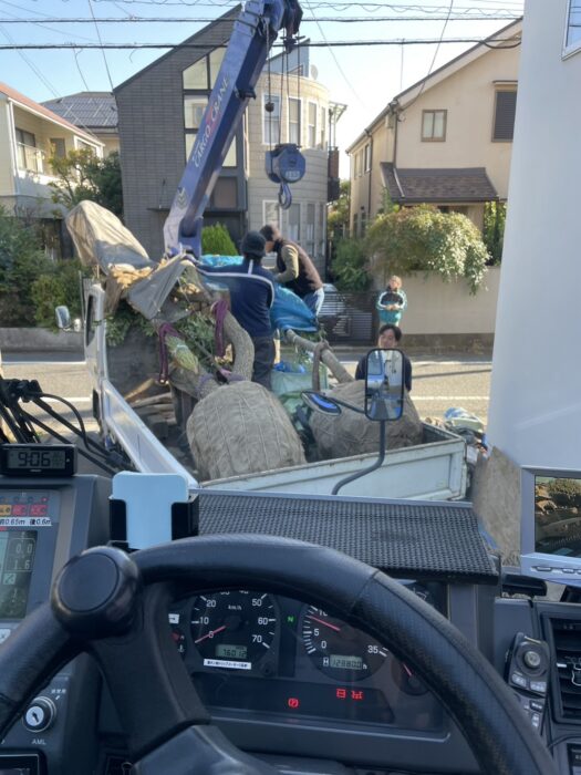 本日、植栽搬入作業です。中庭に植栽と庭石搬入致しました。作業は順調に進んで無事終わる事が出来ました。