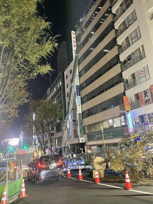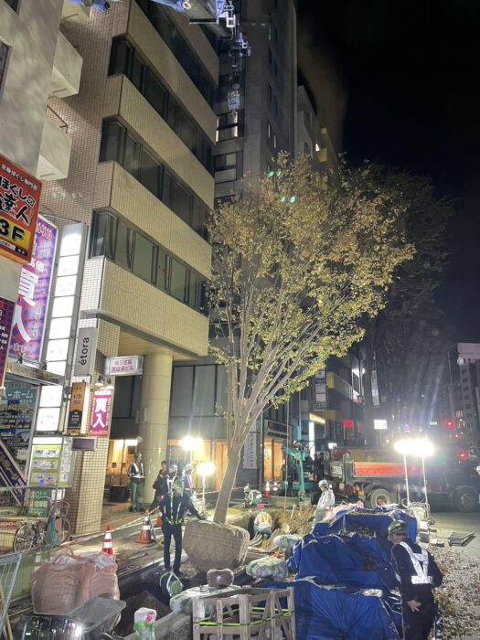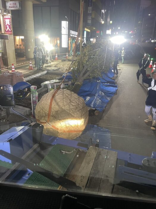 本日、夜勤で植栽搬入作業です。作業は順調に進んで無事終わる事が出来ました。