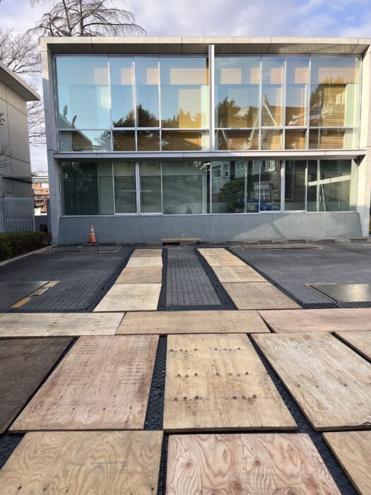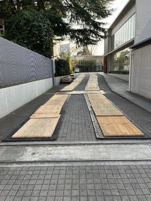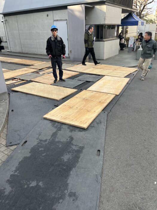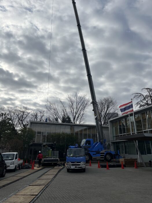 本日、樹木伐採作業です。弊社ユニック班が養生施工した場所で安心してクレーン進入設置致しました。対象木が6本あり今日は対象木1本の伐採作業行いました。作業は順調に進んで無事終わる事が出来ました。