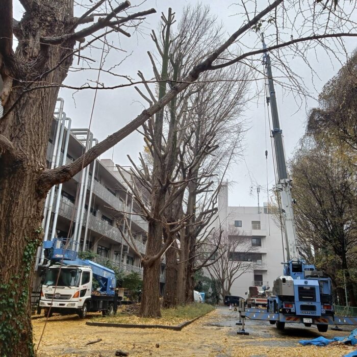 本日、昨日に引き続き樹木剪定作業です。残り3本剪定作業行い無事終わる事が出来ました。