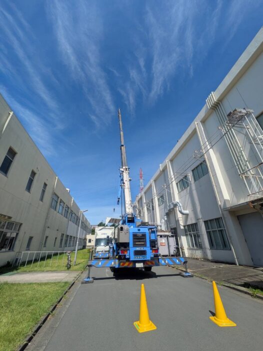 本日、機器搬入作業です。屋上に搬入致しました。作業は順調に進んで無事終わる事が出来ました。