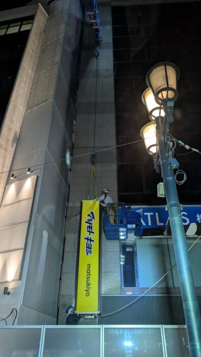 本日、夜勤で看板取付作業です。作業は順調に進んで無事終わる事が出来ました。