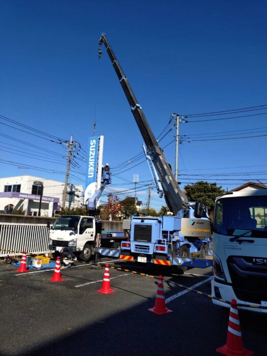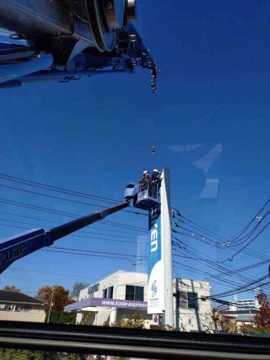 本日、看板撤去作業です。作業は順調に進んで無事終わる事が出来ました。