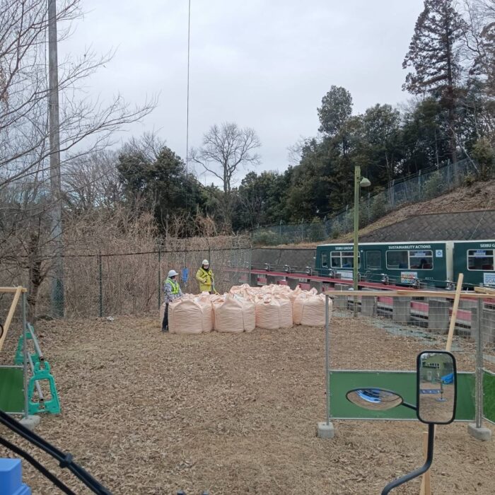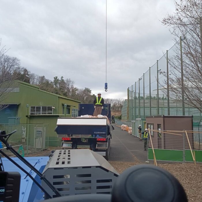 本日、砕石搬入作業です。トンバックで砕石搬入致しました。作業は順調に進んで無事終わる事が出来ました。