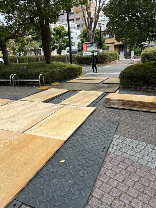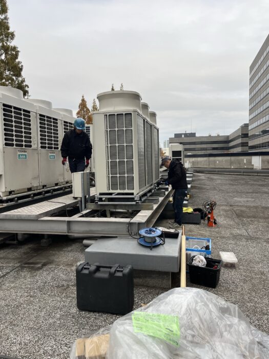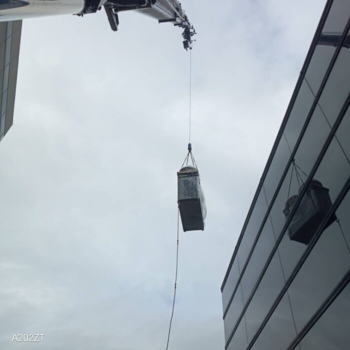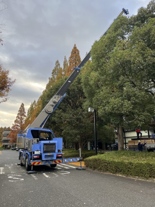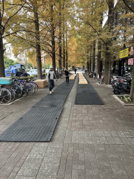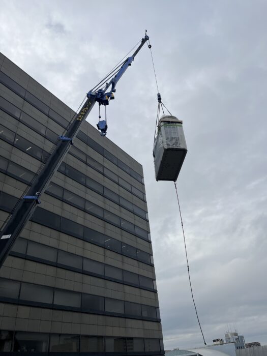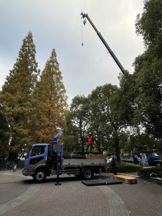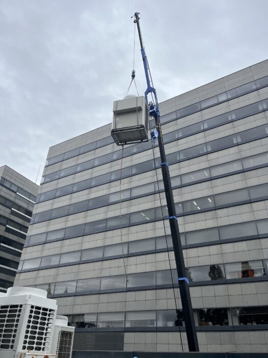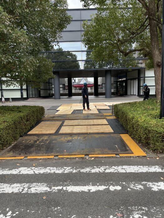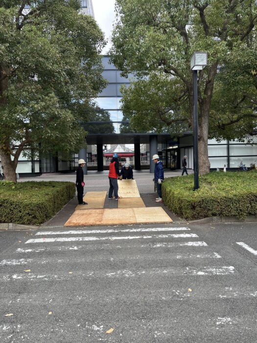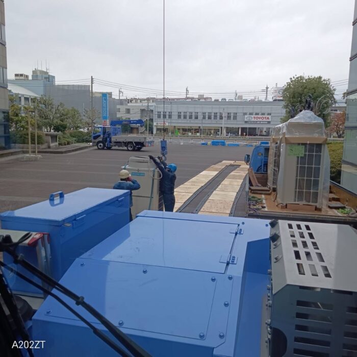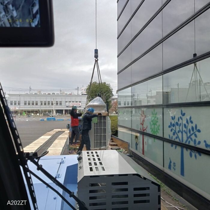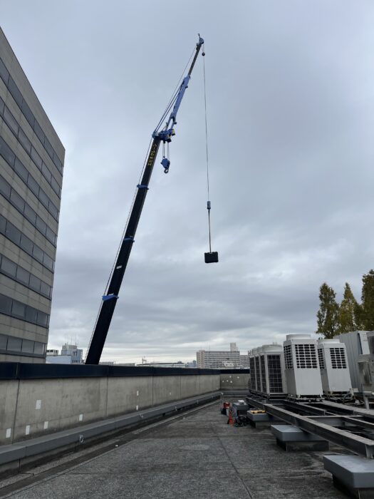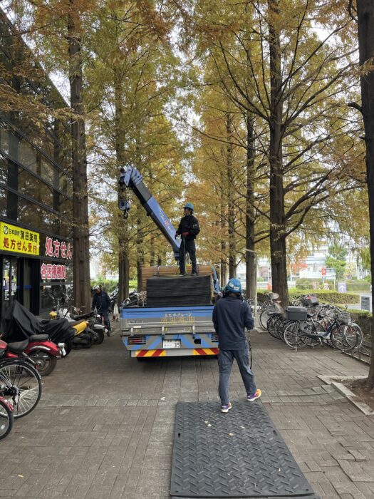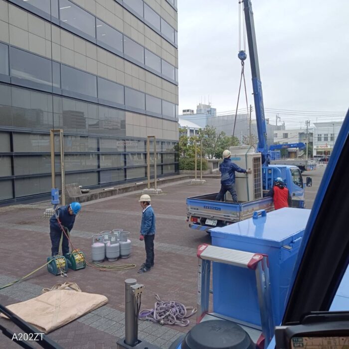 2025年11月23日空調室外機揚重及び鉄板養生施工撤去作業