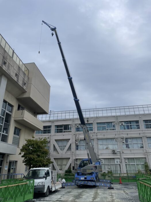 本日、空調室外機揚重作業です。3台の空調室外機交換致しました。作業は順調に進んで無事終わる事が出来ました。