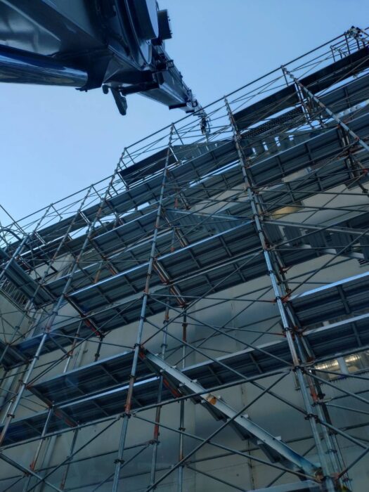 本日、空調室外機揚重作業です。作業は順調に進んで無事終わる事が出来ました。