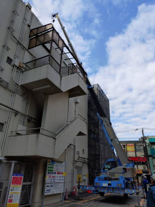 本日、空調室外機搬出作業です。作業は順調に進んで無事終わる事が出来ました。