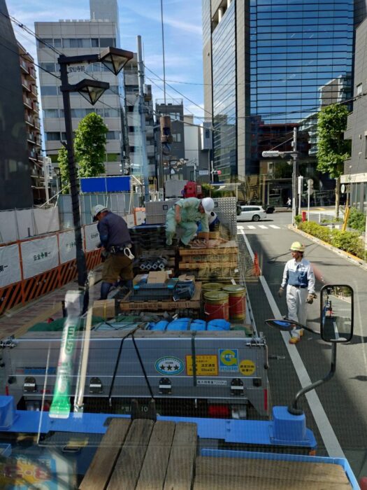 本日、ベースパック搬入作業です。トラック1台分搬入致しました。作業は順調に進んで無事終わる事が出来ました。