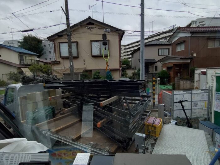 本日、昨日に引き続き軽量鉄骨建て方作業です。2階部分の建て方作業行いました。作業は順調に進んで無事終わる事が出来ました。