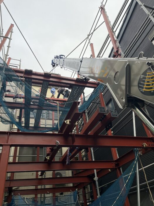 本日、軽量鉄骨建て方作業です。今日から3日間に分けて作業行いました。朝、カニクレーンを積んだトラックから荷下ろしして現場の基礎内に進入設置、今日は奥から建て方作業行いました。奥の建て方作業は順調に進んで無事終わる事が出来ました。
