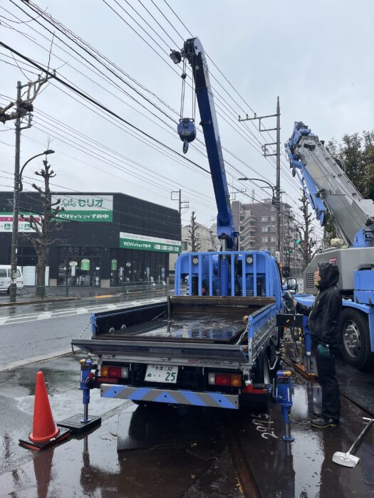 本日、鉄板回収作業です。前回施工した現場の鉄板回収作業行いました。作業は順調に進んで無事終わる事が出来ました。置場で鉄板洗いして無事終わる事が出来ました。