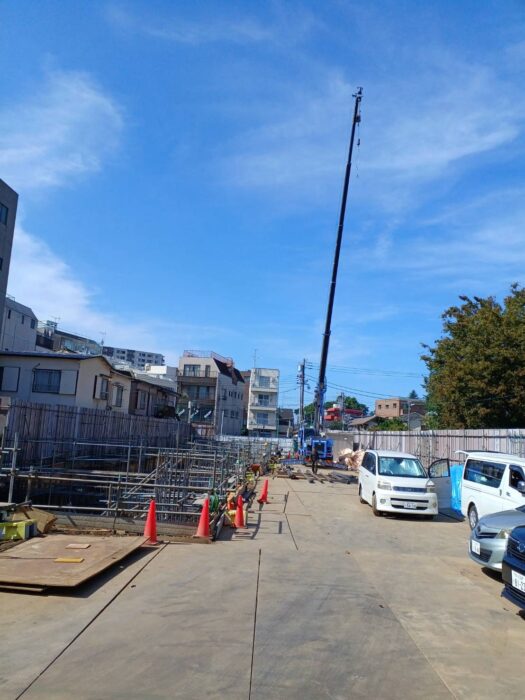 本日、鉄筋材搬入作業です。午前中トラック1台搬入、午後振分作業行いました。作業は順調に進んで無事終わる事が出来ました。