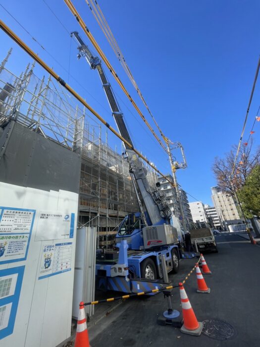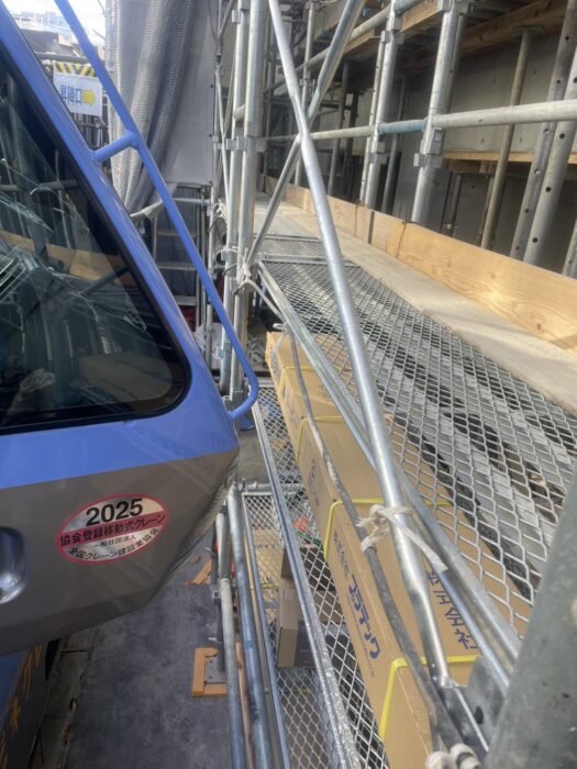 本日、鉄筋材搬入作業です。狭い現場で設置も大変でしたが、作業は順調に進んで無事終わる事が出来ました。