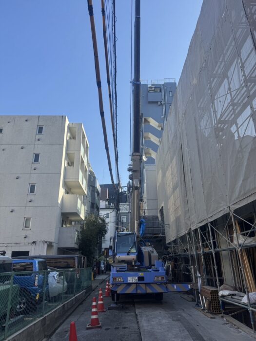 本日、鉄筋材搬入作業です。作業は順調に進んで無事終わる事が出来ました。
