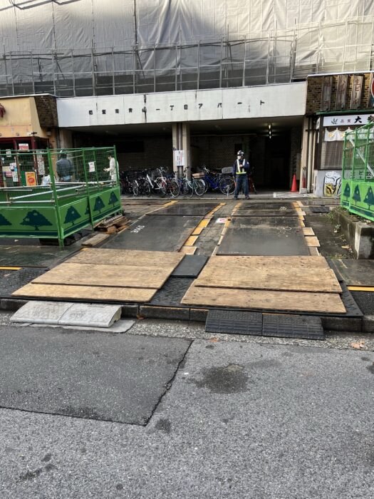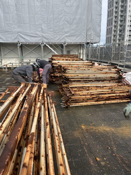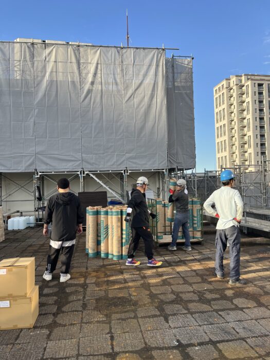 2025年11月1日鉄骨フェンス撤去作業及び防水材搬入