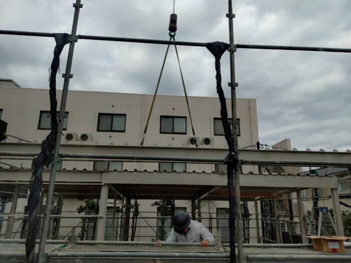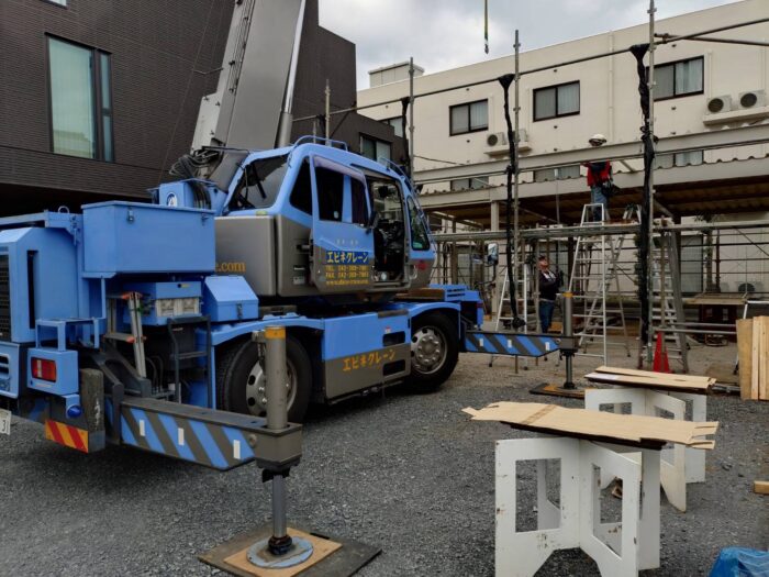 本日、鉄骨建て方作業です。ガレージの建て方作業で建て方作業は順調に進んで無事終わる事が出来ました。