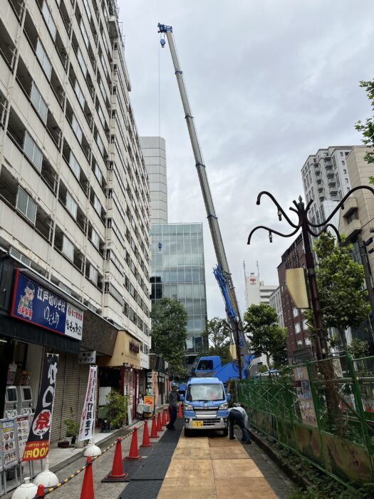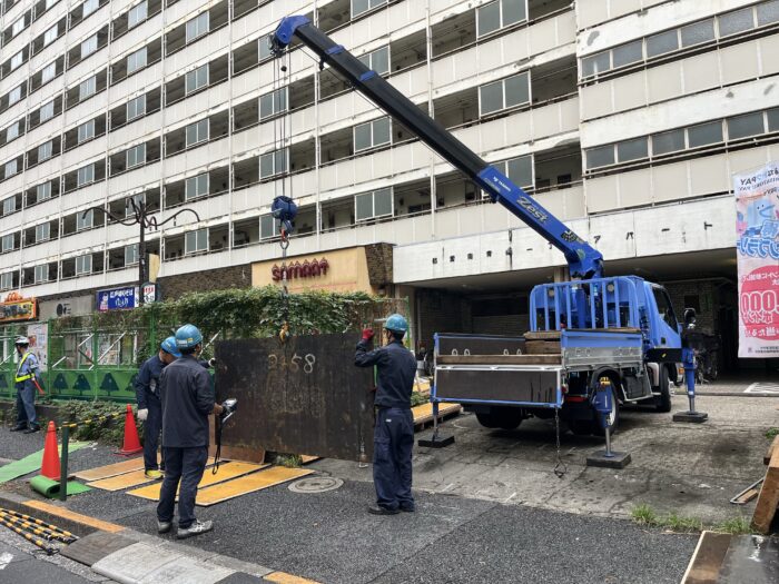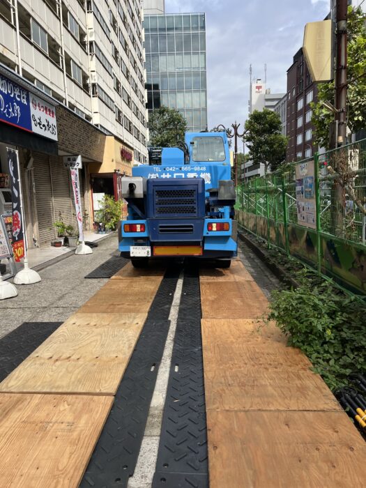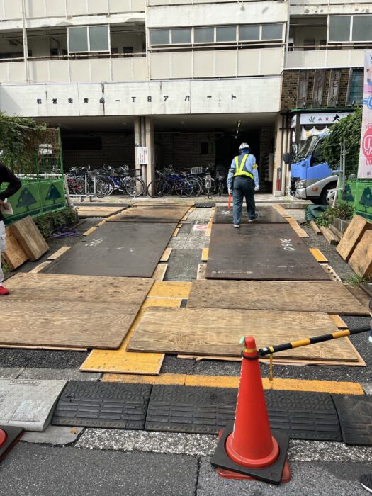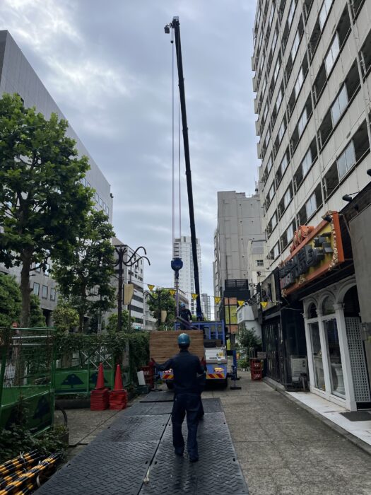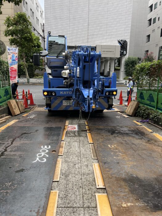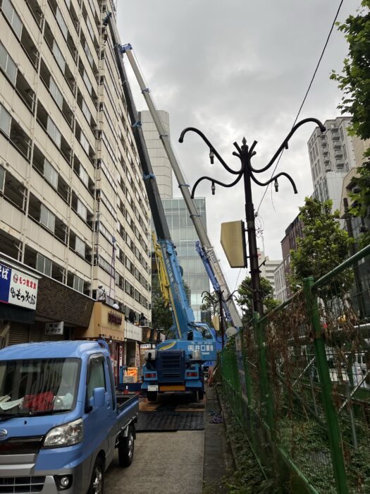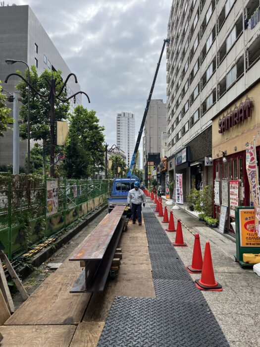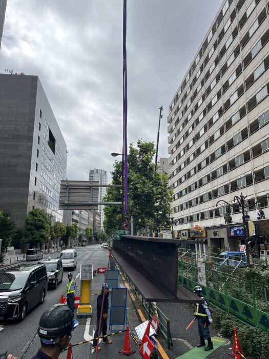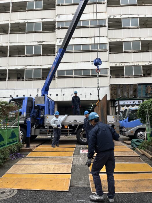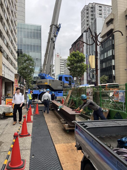 2025年9月20日鉄骨材搬入及び養生施工撤去作業