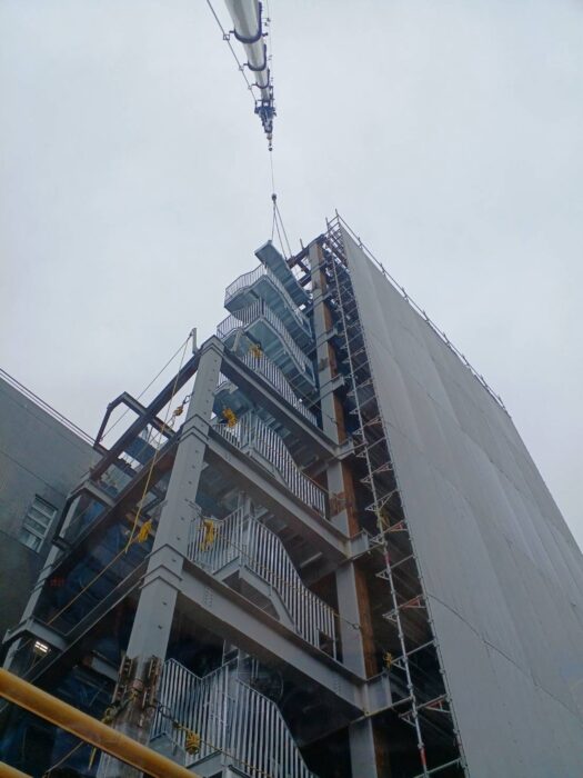 本日、引き続きの現場で鉄骨階段取付作業です。作業は順調に進んで無事終わる事が出来ました。
