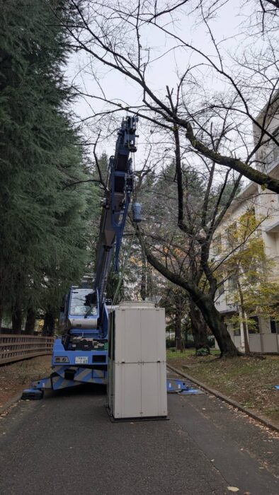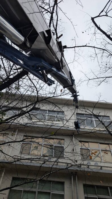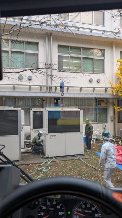 本日、学校敷地内にあるGHPの入替作業です。枝がありやりにくい場所でしたが、作業は順調に進んで無事終わる事が出来ました。