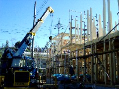 本日は木造の建て方です。上部に引込み線があり若干やりにくかったですが問題なく棟上いたしました。皆さんお疲れ様でした。有難うございました。 (k) |