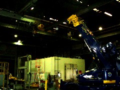 本日は天井クレーンのホイスト交換作業です。吊りしろも少ないので注意が必要です。的確な合図と目視で無事完了、皆さんお疲れ様でした。有難うございました。