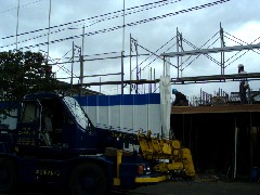 本日はRC現場の鉄筋荷揚げです。歩道に乗り上げ線の内側より送り込みます。荷取りに少し難がありますが予定通り作業終了、皆さんお疲れ様でした。 (k) |