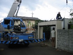今日はコンテナハウスの搬入据え付け作業です。似たような作業が続きました。雲行きが怪しい中、ガレージのスペースに上手く納まりました。立派な植木を傷つけないように気を使って降ろしました。雨が降り出す寸前で作業が終わりました。監督さん、ハウス屋さん、お疲れ様でした。 (y) |