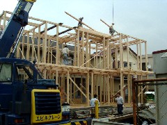 本日は木造の建て方です。敷地が広く、クレーンを中に設置することが出来たのでとてもやりやすい現場です。手際よく作業終了、皆さんお疲れ様でした。有難うございました。