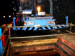今日は夜間作業です。覆工板を開けて縦坑内での揚重作業です。以外と明け方は寒かったです。信号機の真下での作業ですから、上に横に気を使いながら作業しました。